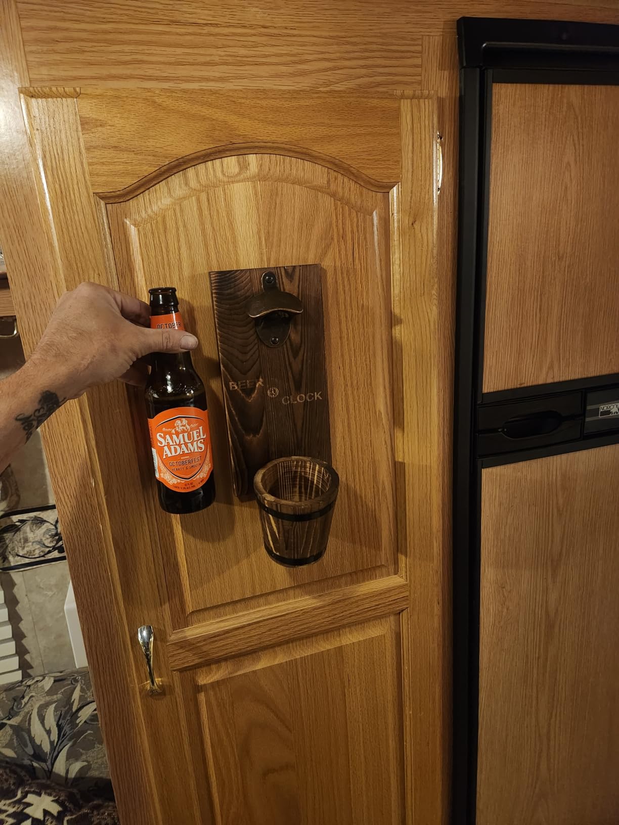 The bonus screw-mount opener included in the package is a nice touch for secondary locations. I mounted mine on the cooler I take to tailgates, creating a complete outdoor entertaining solution. The engineered wood construction feels solid, and the smooth edges show attention to finishing details.